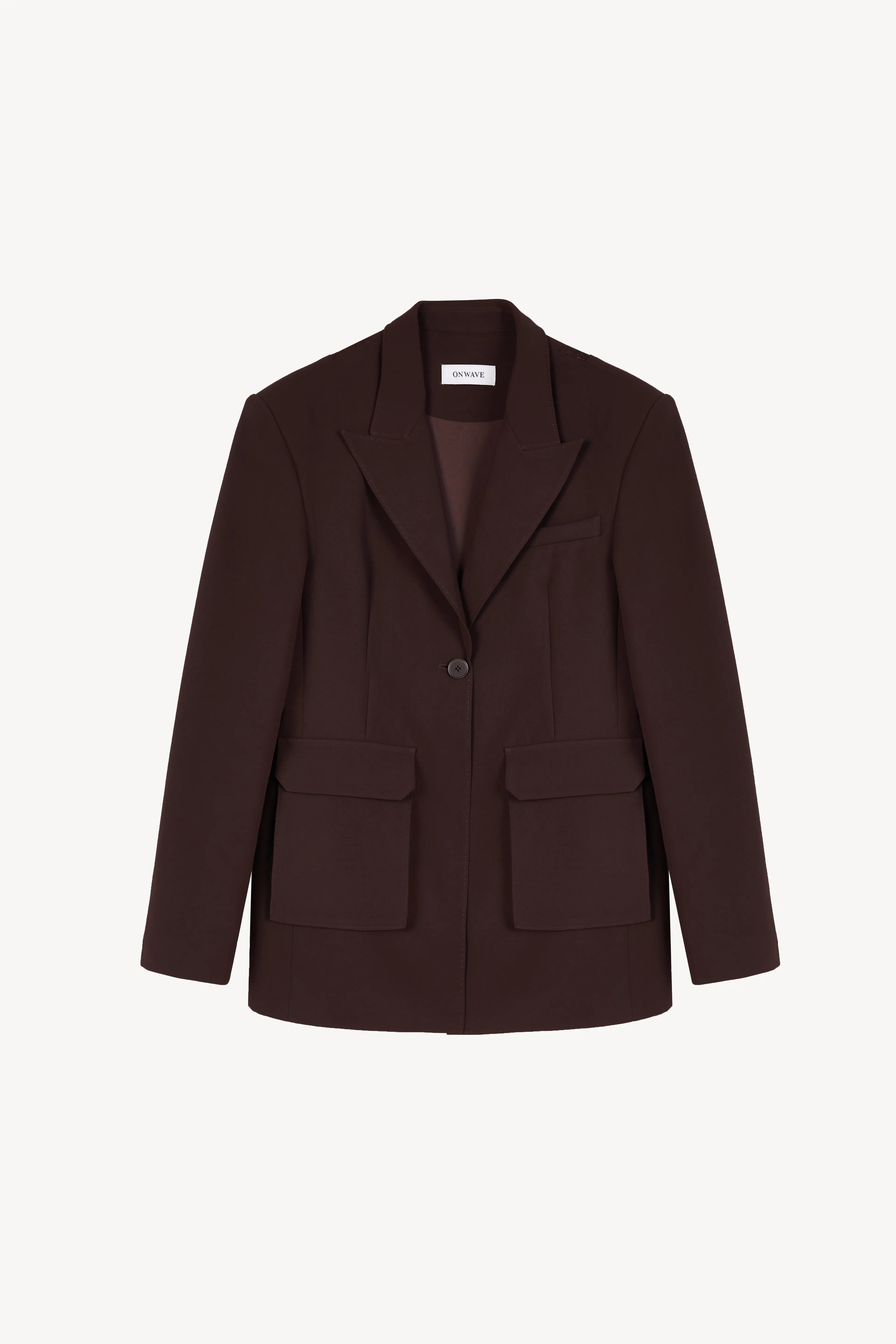 Closure: Single-button front closure for a defined and flattering shape.