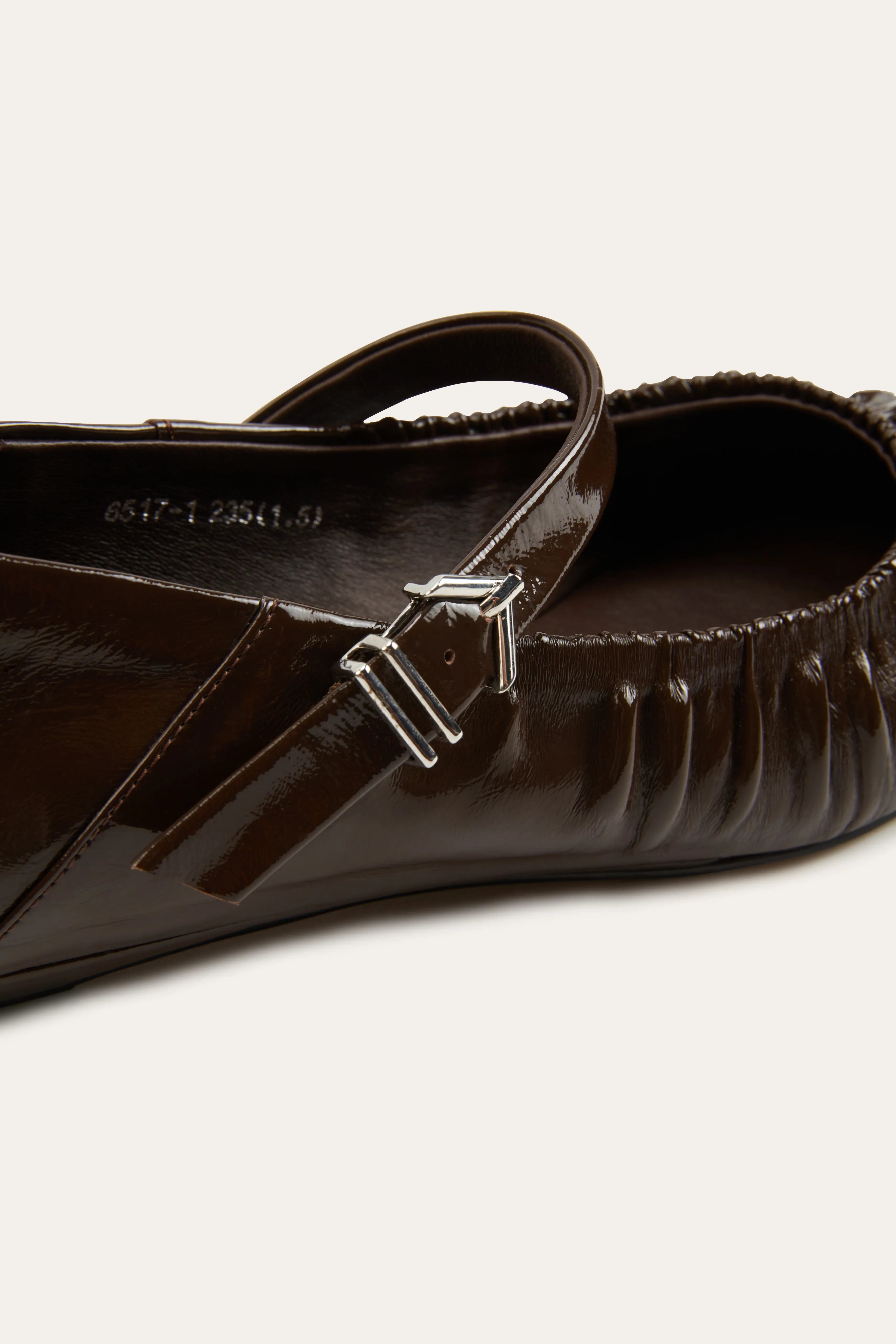With their rich espresso shade and softly ruched design, these flats bring a modern twist to everyday elegance—refined, comfortable, and effortlessly chic.