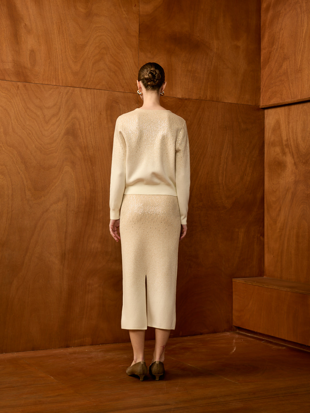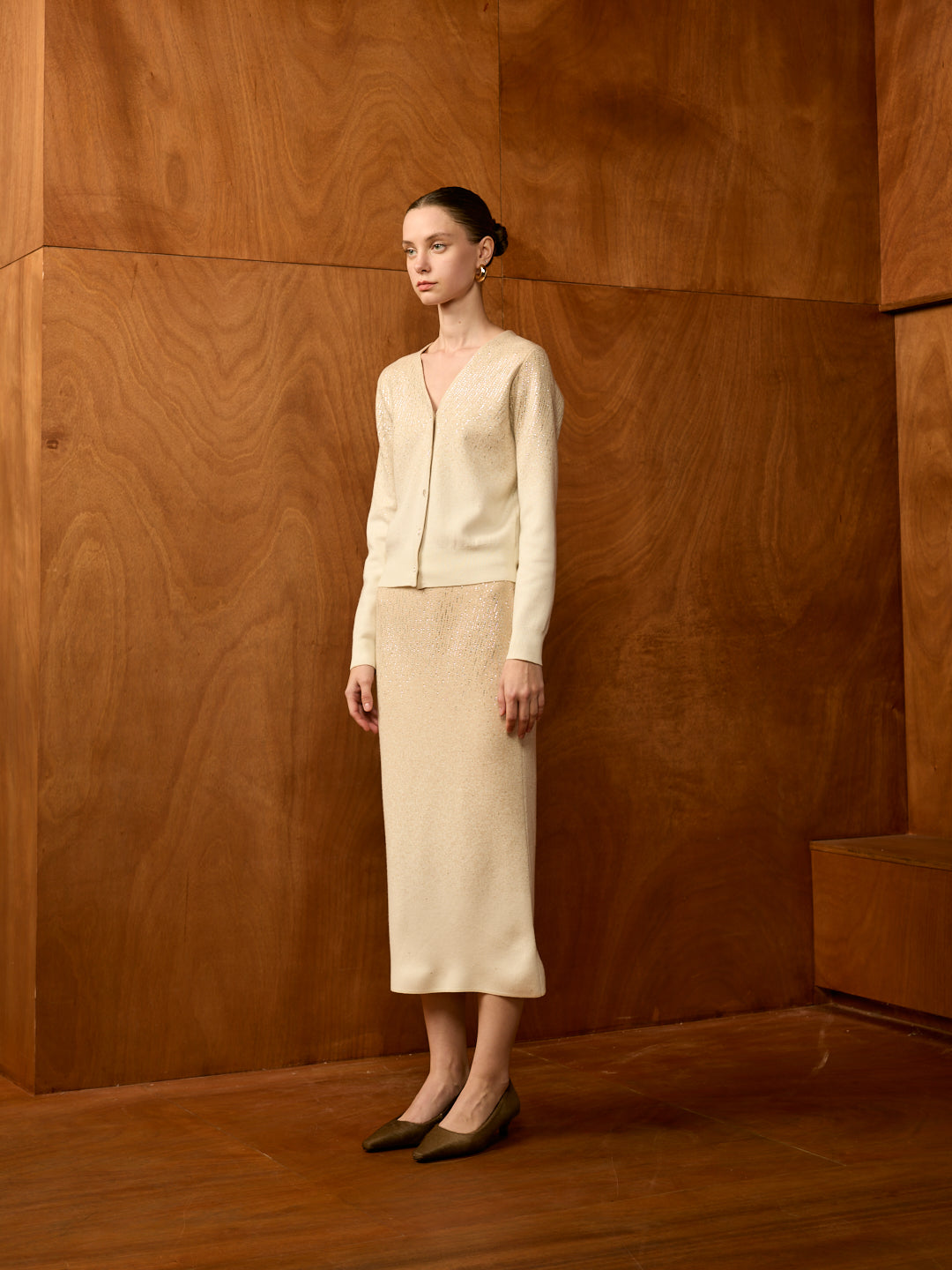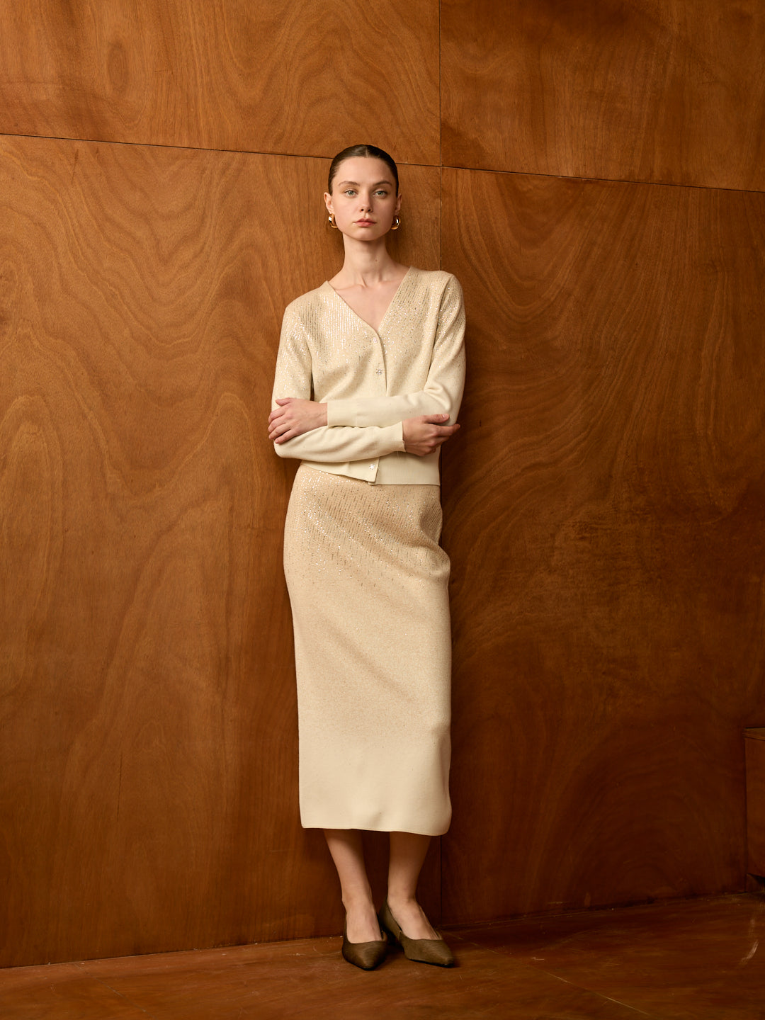 Stardust V-Neck Cardigan Set (Cardigan + Midi Skirt)